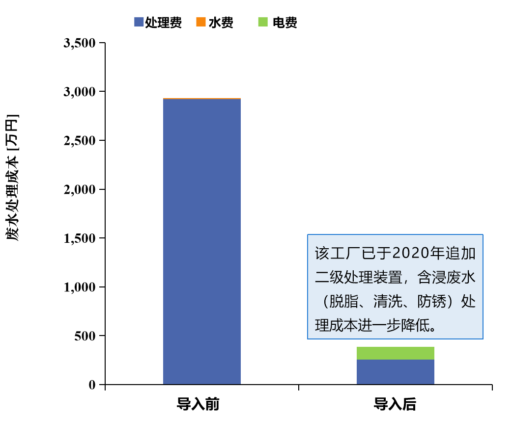 (2)廢水處理設(shè)備導(dǎo)入前后的成本對比